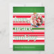 Carte de Noël joyeuse présentant des rayures rouges et blanches ludiques avec une typographie "amour, paix et joie". L'adorable boule dorée sert de cadre photo charmant pour vos souvenirs de famille. Parfait pour répandre la joie des fêtes avec des photos de famille personnalisées et des noms personnalisés. Le design fantaisiste à rayures avec un cadre d'ornement mignon crée des cartes saisonnières amusantes qui font sourire. Idéal pour les vœux de Noël joyeux et les célébrations festives. Pour une aide à la personnalisation, veuillez envoyer un courriel à remidevandesigns@gmail.com RemideVan©