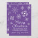 Carte de Noël aux flocons de neige violet et blanc avec un joli plaisir fantaisiste et un accueil festif.