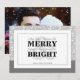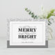 La conception de carte de Noël noire, grise et blanche de TeeLofts présente une typographie moderne et audacieuse « Joyeux & Lumineux » superposée sur une esperluette grise claire comme éléments de conception principaux. La bordure extérieure est une illustration graphique de feuillage de vacances en gris et blanc. Il est facile d'ajouter les noms de votre famille sur le devant et une photo au verso daté. #Noël #Fêtes #CartesDeNoël