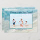 Meilleurs vœux envoyés de Floride (ou de votre endroit préféré au bord de la mer) ! Salutations pour les fêtes de la part des amoureux de l'océan du monde entier ! Cette carte de Noël de plage aux vagues de l'océan de la côte du golfe de Floride dans des nuances de sarcelle, d'aqua et de marine et de bleu océan est fantaisiste et parfaite pour un Noël tropical ou pour partager des souvenirs de vacances. Ajoutez votre photo et elle apparaîtra comme par magie dans le cadre ! Il suffit de personnaliser le nom de la famille, l'endroit préféré et l'année, et vous avez votre propre carte de Noël ou de Hanoukka personnalisée !