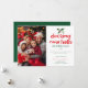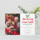 Une carte de Noël élégante et raffinée, simple, pour changement d'adresse avec un modèle pour une photo, mettant en vedette un petit élément botanique hivernal : une branche de houx rouge et vert. Une belle carte botanique 'nous avons déménagé' que vous pouvez personnaliser avec votre/vos nom(s), l'année et une photo de famille (ou une photo d'enfants, etc.).