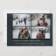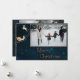 Envoyez des voeux de vacances magiques avec cette carte de Noël de famille de nuit étoilée bleue. L'avant est orné d'un riche arrière - plan de marine parsemé d'étoiles dorées, d'un accent festif de rennes et de traîneau, et d'espace pour votre photo de famille préférée au-dessus de "Joyeux Noël" en lettres élégantes. L'arrière offre de la place pour quatre photos supplémentaires, votre accueil personnalisé et votre nom de famille. Une belle carte à plat pour partager chaleur et joie cette saison.