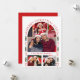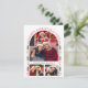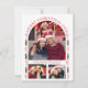 Envoyez la joie des fêtes avec cette élégante carte de Noël en forme d'arche présentant trois photos personnelles, des accents de canne de bonbon, de la verdure de pin et un message de vœux rouge audacieux. Avec un design d'arche élégant et un espace pour le nom de votre famille et l'année, cette carte est le mélange parfait de moderne et de traditionnel.