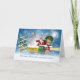 Carte de Noël de nièce avec l'elfe mignon sur le train de Noël