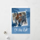 Carte de Noël religieuse moderne avec un fond bleu, une photo à remplacer par la vôtre, les trois rois mages, des palmiers du désert, la phrase festive hivernale 'ô nuit sainte', et votre nom de famille.