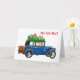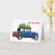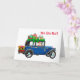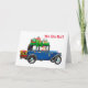 Joli Père Noël dans une voiture ancienne disant Ho Ho Ho ! et Joyeux Noël et Bonne Année à l'intérieur. Personnalisez le texte à votre goût.