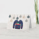 Santé à ceux qui participent au concours du "Pull de Noël laid". C'est une carte de Noël drôle avec un pull de Noël bleu avec une voiture de Noël rouge avec un sapin de Noël sur le dessus. Le fond présente des ornements en gris, noir et beige. L'intérieur de la carte indique "Je ne sais pas si ce pull laid fait mal à mes oreilles ou à mes yeux".