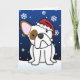 Envoyez des cartes de Noël Bulldog à tous vos amis amoureux des animaux cette année ! Un mignon dessin animé blanc se trouve sur la neige fraîchement tombée, portant un casquette Père Noël, tandis que les flocons de neige descendent doucement tout autour de lui. A l'intérieur, on trouve aussi des flocons de neige qui disent "Joyeuses fêtes !" Vous pouvez personnaliser le texte à n'importe quel message. Autres couleurs de manteau disponibles.