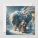 Bison tirant un chariot de jouets cadeau de Noël et carte de vacances du Père Noël. Personnalisez ceci avec votre propre message et faites-en votre propre.