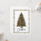 Célébrez la magie de Noël avec cette carte de vœux unique représentant un arbre stylisé orné de décorations rouges et d'accents feuillus, sur un fond texturé qui met en valeur le design élégant. Les lignes dorées qui encadrent la carte et la base de l'arbre ajoutent une touche de sophistication. Parfait pour envoyer vos vœux de fêtes de fin d'année de manière moderne et raffinée, idéal pour les amis, la famille ou les entreprises qui recherchent un style festif distinctif. Cette carte fera ressortir vos vœux de fêtes et sera vraiment inoubliable.