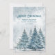 Élevez votre célébration et transformez vos proches en un merveilleux pays des merveilles hivernal avec une élégante carte de vacances, créant le ton parfait pour une célébration inoubliable. Ajoutez une touche personnelle à votre carte qui présente des flocons de neige et des sapins de Noël en aquarelle délicate dans des teintes argent et bleu glacé. Embrassez la magie de la saison avec un paradis enneigé qui garantit que votre célébration des Fêtes scintillera de style et de charme.
