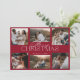 Cette carte de Noël photo Six présente un fond de couleur rouge atténué, créant une atmosphère calme et festive. "Joyeux Noël" est affiché bien en vue au centre, écrit dans une police de caractères cursive élégante avec une finition argentée raffinée, bien qu'elle n'ait pas le brillant de la version précédente. Cela donne à la carte une élégance plus subtile et discrète.