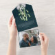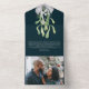Fleurs d'hiver et Mistletoe Élégant Noël tout en une carte, enveloppe et photo-keepsaké Carte - Carte photo de vacances de Ricaso - conçu avec des détails floraux verts et blancs - il est sûr d'être un succès avec famille et amis .. facile d'ajouter votre propre texte et photo - Envoyer vos salutations dans le style de ce jour avec une carte personnalisée avec de belles fleurs botaniques d'hiver
