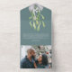 Fleurs d'hiver et Mistletoe Élégant Noël tout en une carte, enveloppe et photo-keepsaké Carte - Carte photo de vacances de Ricaso - conçu avec des détails floraux verts et blancs - il est sûr d'être un succès avec famille et amis .. facile d'ajouter votre propre texte et photo - Envoyer vos salutations dans le style de ce jour avec une carte personnalisée avec de belles fleurs botaniques d'hiver