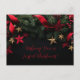 Célébrez la saison des fêtes avec cette élégante carte de Noël, mettant en vedette une couronne magnifiquement détaillée ornée de rubans rouges, d'étoiles dorées et de pin vert luxuriant. Le fond sombre luxueux met en valeur les éléments festifs, créant un message de vacances sophistiqué et chaleureux. Le devant de la carte comprend un message sincère, "Frohe Festtage und ein gutes neues Jahr !" (Joyeuses Fêtes et Bonne Année !), tandis que le verso offre des champs de texte et d'adresse entièrement personnalisables, vous permettant de personnaliser vos vœux de vacances pour vos proches. Parfait pour envoyer une touche d'élégance à Noël.