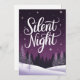Envoyez des vœux de fêtes paisibles avec cette carte de Noël violette élégante Silent Night, représentant une scène hivernale sereine aux teintes violettes. L'écriture manuscrite et les arbres enneigés créent une touche chaleureuse et festive qui capture l'esprit d'une soirée d'hiver calme. Parfaite pour partager la beauté et la tranquillité de la saison avec les amis et la famille. Idéal pour ceux qui cherchent des salutations de fêtes uniques et non confessionnelles.