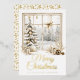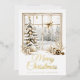 Partagez la joie de la saison avec cette carte de vacances classique au houx de Noël. Une carte parfaite pour vos amis, votre famille, vos collègues et vos proches. Cette carte présente une magnifique scène de fenêtre de Noël. Les tons dorés, blancs et bruns donnent à cette carte une atmosphère rustique élégante. Le texte, en feuille d'or, ajoute une touche supplémentaire d'éclat. Avec l'espace prévu pour les noms individuels personnalisés et un message, vous pouvez facilement ajouter votre touche personnelle et partager les vœux de Noël de votre famille avec vos proches.