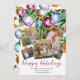 Envoyez à vos amis et à votre famille une carte de Noël avec un collage de photos de famille cette saison des fêtes. Le design présente des boules de Noël festives aquarelles sur un sapin de Noël, 5 photos personnalisées et un modèle élégant combiné avec une écriture calligraphique et une police serif.