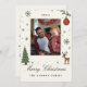 Célébrez les fêtes avec cette carte de Noël familiale magnifiquement conçue. Avec un fond ivoire classique et des accents festifs tels que des rennes, des ornements, des flocons de neige et un arbre de Noël, cette carte personnalisable est parfaite pour répandre la joie des fêtes. Ajoutez votre photo de famille préférée, votre nom et l'année pour créer un souvenir que vos proches chériront pendant des années.