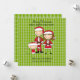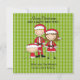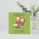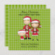 Accueillez vos amis et votre famille avec cette adorable carte. Il a un arrière - plan vert avec de petits pois verts foncés en rangs. Il y a une famille de 3 personnages en bâtons habillés en costumes et casquettes père Noël rouges.Personnalisez cette carte au même nombre de membres dans votre famille. Personnalisez pour le rendre spécial. Illustrations JW