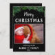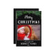 Carte de vœux de Noël festive avec vos vœux, nom de famille et l'année en écriture blanche moderne - personnalisez avec votre texte. Le fond est noir avec des flocons de neige blancs et des feuilles de pin vertes. Insérez votre photo de famille préférée dans le modèle et créez une carte de Noël spéciale pour votre famille et vos amis.