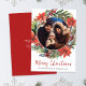 Joyeux carte photo de Noël dispose d'une police de caractères élégante avec les mots 'Joyeux Noël' avec un cadre de couronne de feuillage festif autour de la photo. Correspondance de la couleur rouge au dos de la carte avec un message en texte blanc. Cette carte simple et élégante vous permet de customiser avec votre propre photo et message. Modifiez la couleur du texte ou conservez-la comme indiqué ici.