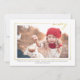 Cette carte de vacances présente le texte Merry dans une police manuscrite en faux or et un cadre. Le dos est muni d'un motif en diagonale dorée avec une deuxième photo en option