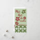 Un beau motif de quilt hawaïen traditionnel borde cette carte de Noël hawaïenne avec un bonbon poivré honu et un hibiscus rouge. Faites-en un Mele Kalikimaka !