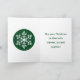 Le devant est recouvert d'un flocon blanc sur un arrière - plan vert foncé avec "Joyeux Noël" de la famille autour. L'intérieur a une répétition du flocon de neige et un message en vert assorti.
