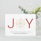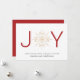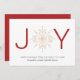 Une simple carte de vacances avec JOY et un flocon de neige doré. Personnalisez un message et les noms de votre famille. Le verso est coordonné en rouge.
