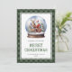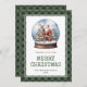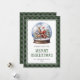 Carte de Noël personnalisée à base de buffle vert, ornée d'un globe de neige avec le Père Noël et le renne. Personnalisez facilement cette carte de Noël vert aquarelle avec votre nom de famille et l'année.