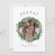 Joyeuse, rustique et élégante carte de Noël photo est la façon parfaite d'envoyer des voeux de vacances à des amis et à la famille. Pour la personne moderne qui veut une carte de Noël haute, chaude et de bon goût, ce modèle de carte de Noël personnalisable est parfait pour vous. Moderne simple et écriture à la main avec le mot "joyful" a l'esthétique de vacances pleine d'espoir que tout le monde aime. Utilisez l'outil de personnalisation pour placer votre image dans la couronne et la personnaliser avec votre nom. La couleur verte profonde au verso et l'accueil de Noël agréable donnent à la carte de Noël un look sophistiqué. L'accueil peut être utilisé tel quel ou customisé pour en faire votre message personnel.