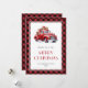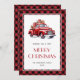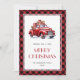 Buffalo rouge personnalisé plaid Joyeuse carte de Noël avec un camion rouge classique. Personnalisez facilement cette carte de vacances camion rouge aquarelle avec votre nom de famille.