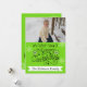 Texte noir qui dit "We Wish You A Joyeux Noël" sur le devant et "and a Happy New Year!" sur le dos avec un arrière - plan vert vif, des flocons de neige blancs et un cerf en silhouette, et des zones où vous pouvez ajouter votre nom de famille et votre photo sur une carte de voeux de Noël, vous êtes sûr de vouloir envoyer famille et amis!