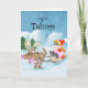 Offrez le cadeau de rire cette saison avec cette carte de Noël fantaisiste et humoristique. Cette conception présente une petite fille traînant dans un paysage enneigé avec son chien déguisé en renne.