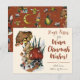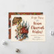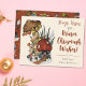 Répandez la joie et les rires pendant cette période des fêtes avec ces cartes de Noël sur le thème des champignons, mignonnes et drôles. Le design présente une illustration peinte à la main d'une joyeuse maison de champignon construisant un bonhomme de neige à l'extérieur de leur maison champignon rouge. Le texte dit : "Câlins, baisers et vœux de Noël champêtre !" Créez vos propres cartes de fêtes uniques en ajoutant votre nom ou le nom de votre famille.