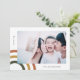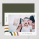 Carte de vacances verte minime et joyeuse avec des tons de terre boho arc-en-ciel et simple texte Merry avec nom et photo.