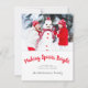 Votre photo de famille préférée prend le devant de la scène au sommet de cette carte photo festive de Noël. Making Spirits Bright est écrit dans un script de Noël rouge ludique. Vous pouvez utiliser le souhait de vacances que j'ai inclus ou facilement changer le texte modèle à votre propre. Votre nom suit dans un script décoratif. Le dos de la carte est recouvert d'un motif de flocon rouge et blanc.