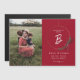 Une carte de Noël moderne avec monogramme et couronne de photo présentant une photo de portrait vertical avec une couronne en fil doré et un monogramme en écriture moderne.