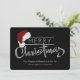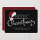 Carte de Noël d'entreprise moderne avec argent Joyeux script de Noël et chapeau de Père Noël sur un arrière - plan noir. Cette carte de Noël moderne rouge et argent est facilement customisée en ajoutant simplement votre message et logo dans le style de police et la couleur de votre choix. Vous pouvez également modifier la couleur de l'arrière - plan.