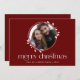 Cette carte de Noël bordeaux rouge et blanc présente une photo ronde entourée d'une simple couronne blanche dessinée à la main. Il est associé au texte moderne. Inscrivez votre nom de famille au recto et vos prénoms et votre année sous le verso du message.