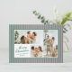 Petites rayures verticales rose et vert foncé donnent à cette carte de vacances photo une ambiance moderne et chic lorsqu'elle est jumelée à des polices classiques en vert de forêt. Le backer coordonné comprend un message plus long personnalisé de soutien et de mise à jour pour l'année qui est parfait pour envoyer à des amis et à la famille.