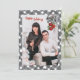 Célébrez la saison avec un charme intemporel en utilisant cette carte de photo de vacances de Noël noir et blanc. Avec une bordure moderne à carreaux, des cloches de Noël rouges festives et un ruban rayé audacieux, ce design encadre magnifiquement votre cliché de vacances préféré. Parfait pour partager la joie, l'amour et les vœux chaleureux dans un style inspiré de la ferme, c'est une façon élégante de personnaliser vos salutations pour la famille et les amis.