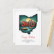 Célébrez la saison avec ce design festif de vacances sur le thème de l'Ohio. L'oeuvre présente le contour de l'état de Buckeye, rempli d'une scène d'hiver cosy — arbres à feuillage persistant, paysages enneigés et ciel ensoleillé. Les voiliers sur l'eau soulignent la connexion de l'Ohio au lac Érié et à la rivière Ohio, tandis que des lettres audacieuses de style rétro ornent fièrement l'OHIO pour une touche de fierté d'état classique. Une façon unique d'honorer votre Etat d'origine ou de partager une connexion régionale pendant les vacances. Envoyez des voeux de vacances chaleureux avec cette carte postale de vacances personnalisable, avec la possibilité d'ajouter votre nom de famille et votre année.