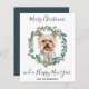Envoyez vos vœux de Noël cette saison des fêtes avec cette élégante carte de vœux de Noël représentant un yorkshire terrier dans un décor de couronne, ainsi que la décoration assortie. Cette carte de Noël pour yorkie présente un chien aquarelle dans une couronne verte et rouge avec du houx et des baies. Personnalisez avec le nom de famille. Cette carte de Noël pour yorkshire terrier sera un favori parmi les amateurs de yorkies, les amoureux des chiens et les amoureux des animaux. Visitez notre collection pour des cartes de Noël, de la décoration intérieure et des cadeaux assortis pour yorkshire terrier. COPYRIGHT © 2020 Judy Burrows, Black Dog Art - Tous droits réservés. Carte de Noël pas chère pour chien Yorkshire Terrier.