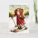 Restored early 20th century vintage Christmas card featuring Santa Claus on skis. Texte read Happy Christmas. If required you can add printed text to the inside page by using the customize button.
