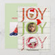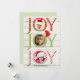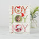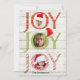 Souhaitez un joyeux Noël à votre famille et à vos amis avec cette carte plate joyeuse. Il y a trois images de texte JOY avec une zone dans la lettre O pour mettre une photo de votre famille. Cette fonctionnalité personnalisée vous permet d'ajouter vos photos de famille et de modifier le texte avec votre nom. Le fond est un léger grain de bois.