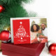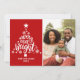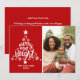 Carte de Noël arbre rouge et blanc avec le message "Joyeux et lumineux", une photo, le nom de la famille ou texte personnalisé, l'année en cours, et un message personnalisé au verso.