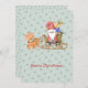 Jolie scène de vacances avec Père Noël, son traîneau et deux rennes. Personnalisez cette carte de Noël à votre goût.