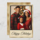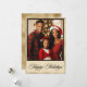 Customisez cette carte de Noël avec votre propre photo préférée. Cadre en or Faux et script "Happy Holidays" sur le devant. Cliquez sur le dos pour ajouter votre propre salutation personnelle et votre nom. Le faux or rend cette carte de vacances si élégante. Parfait pour la saison des fêtes.